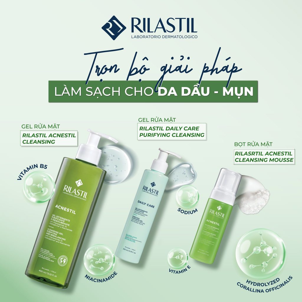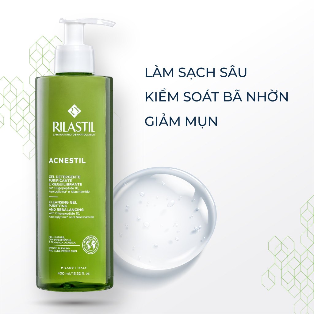 Gel rửa mặt cho da dầu mụn Rilastil Acnestil Cleansing Gel Purifying And Rebalancing 400ml