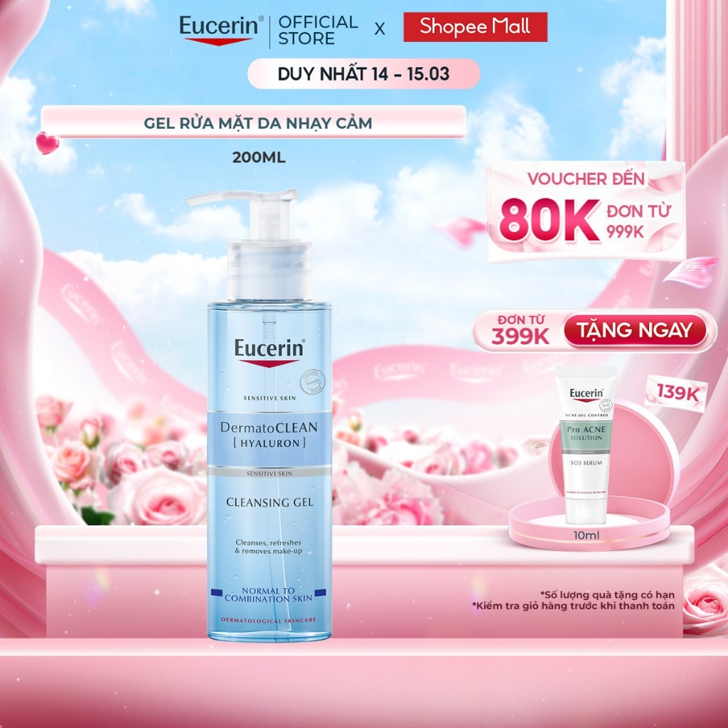 Gel rửa mặt cấp ẩm cho da nhạy cảm Eucerin DermatoCLEAN Cleansing Gel 200ml