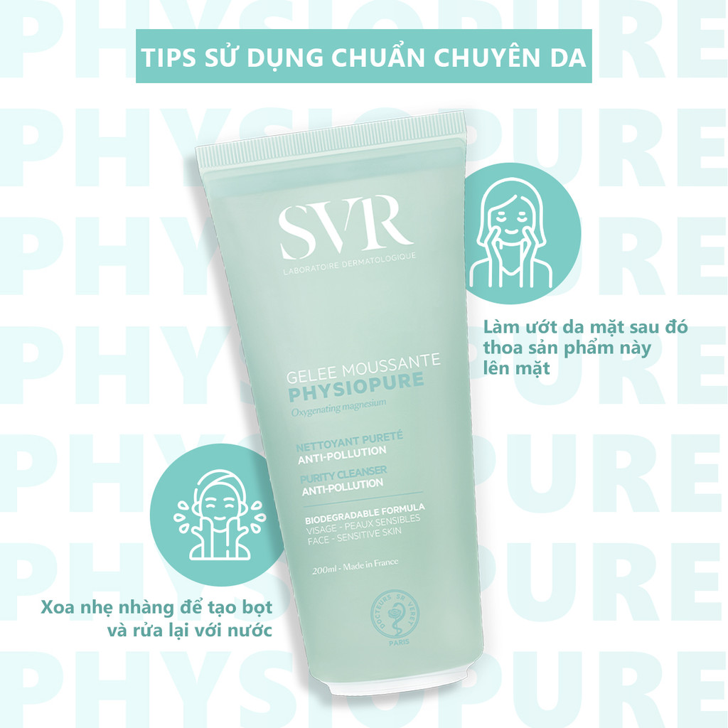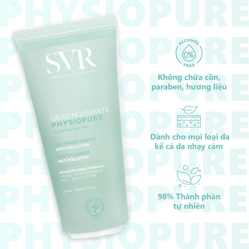 Sữa rửa mặt dạng gel cho da nhạy cảm SVR Physiopure Gelee Moussante 200ml