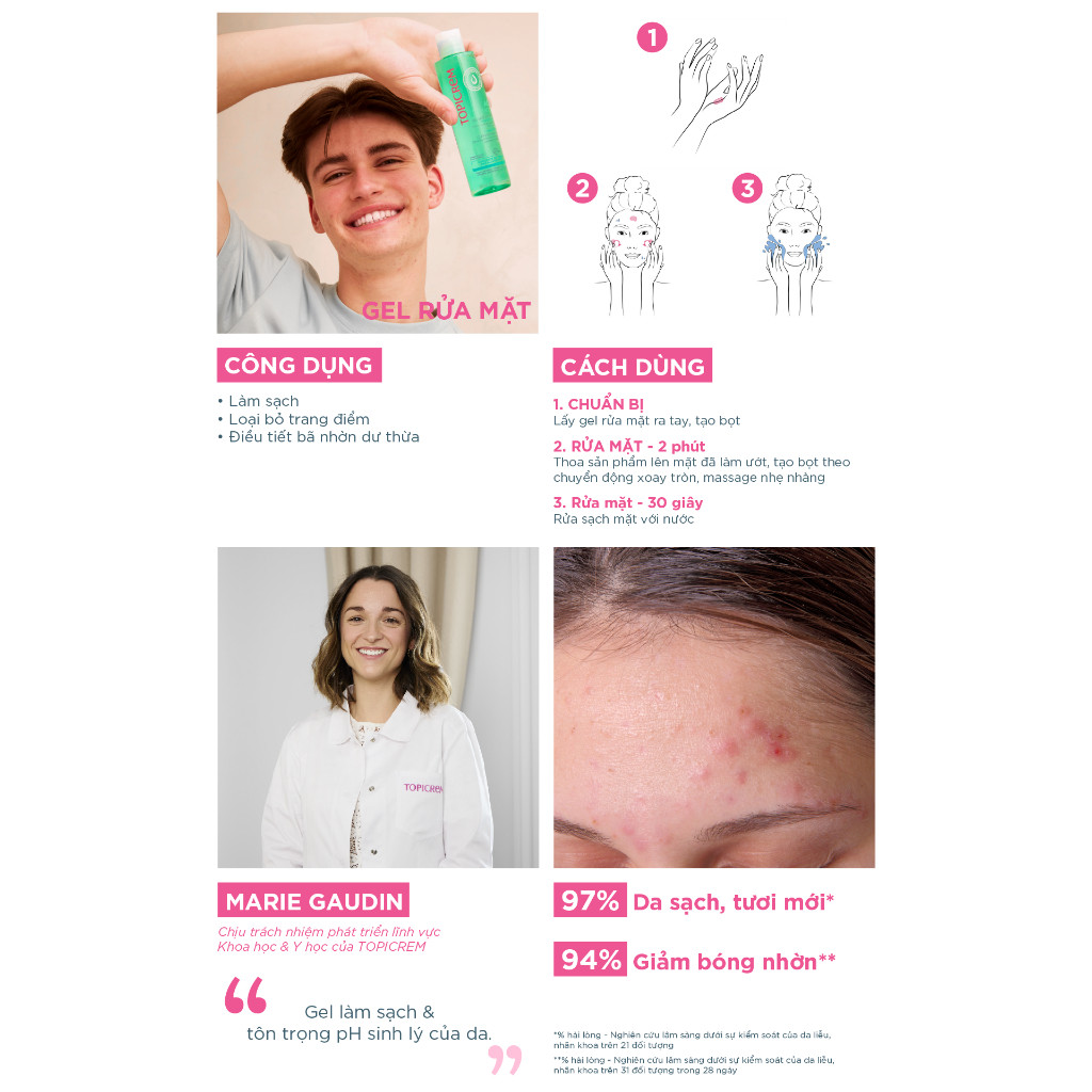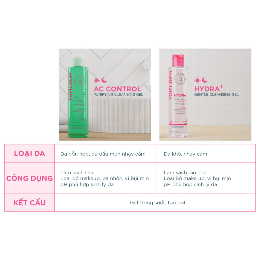 Gel rửa mặt không chứa xà phòng TOPICREM AC CONTROL PURIFYING CLEANSING GEL 200ml