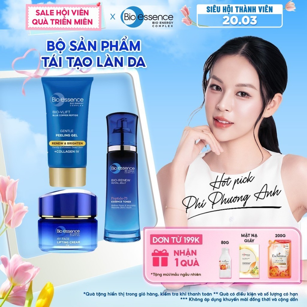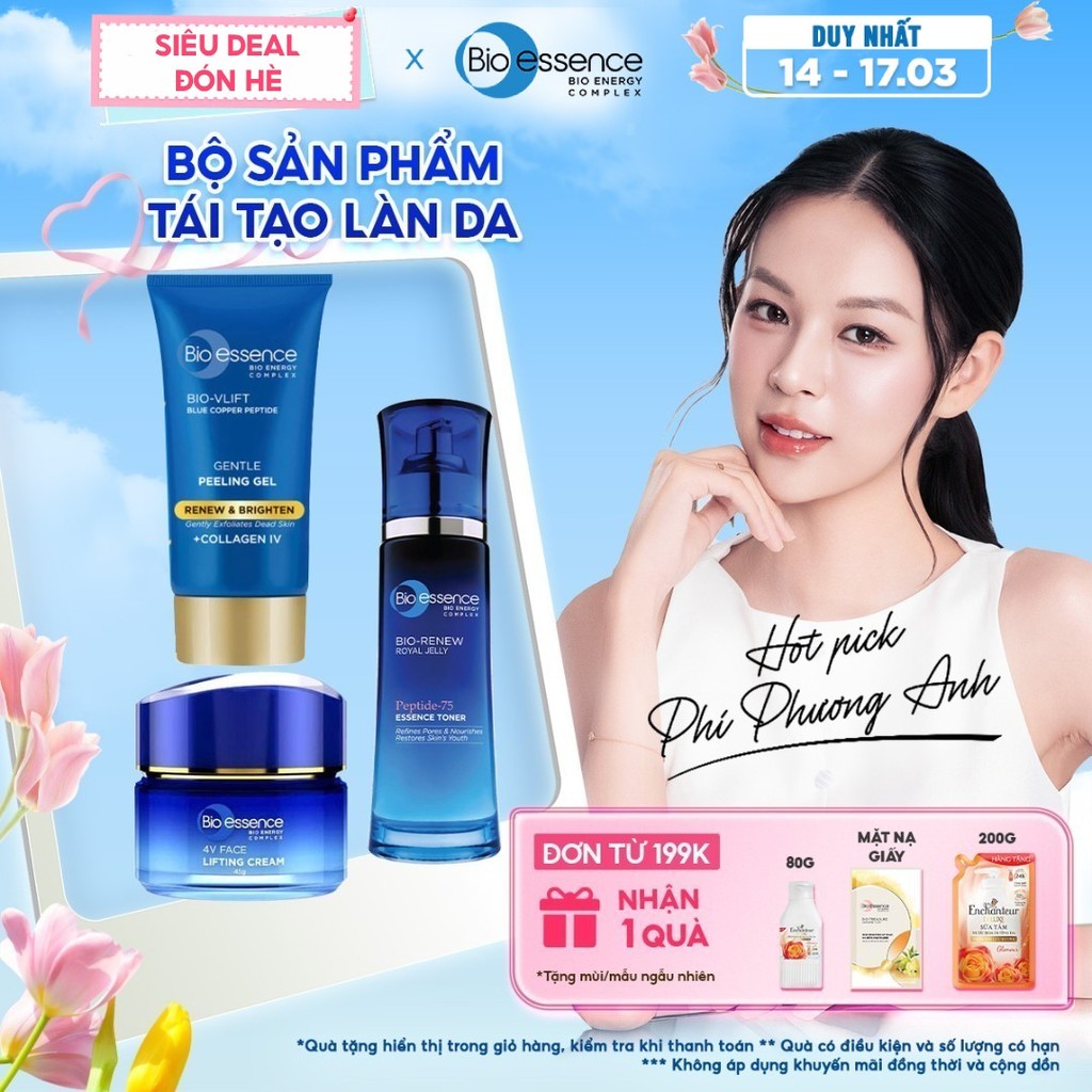 Bộ Bio-essence Renew – Tái tạo da: Gel Tẩy tế bào chết 60g, Sữa rửa mặt 100g, Kem nâng cơ 45g, Toner 100ml