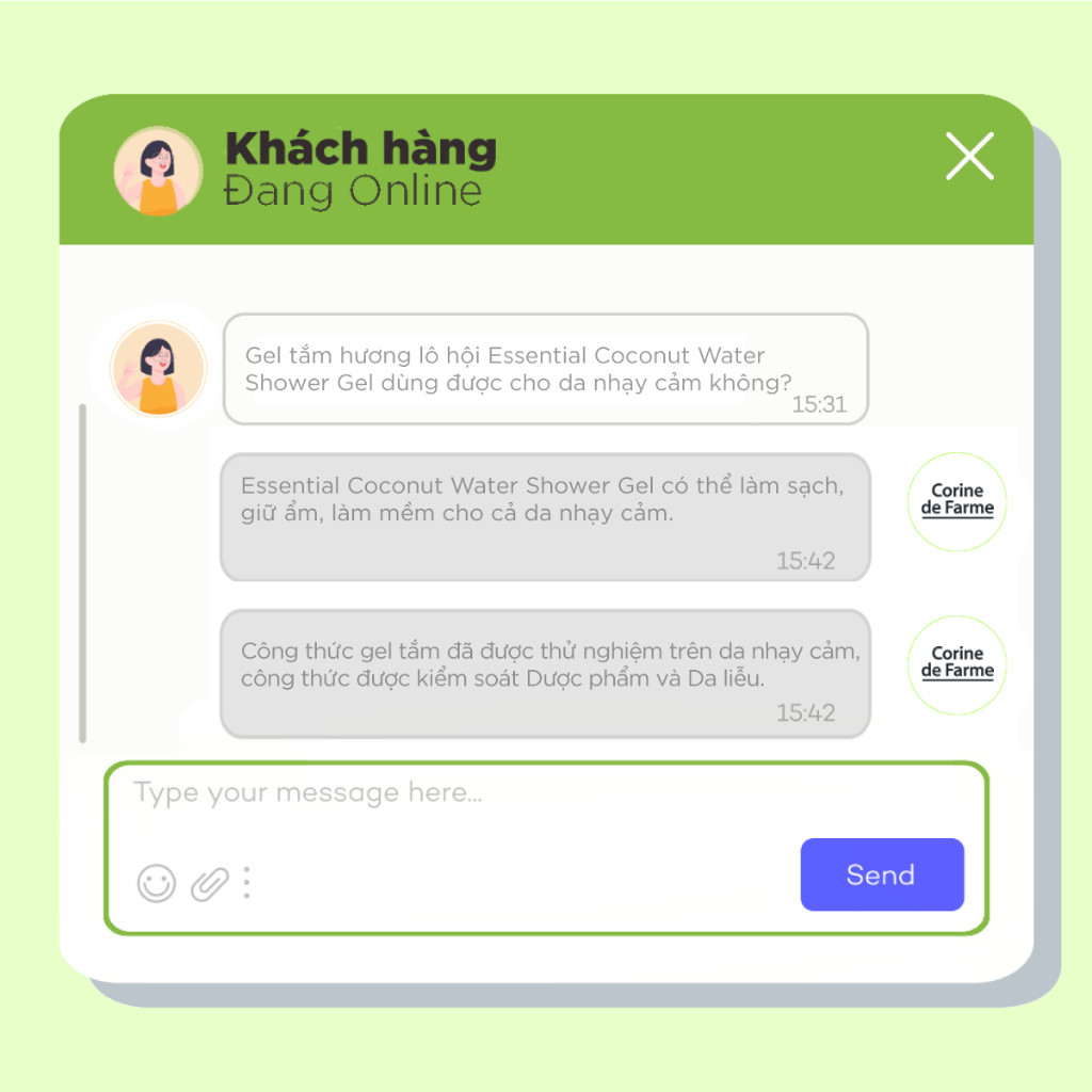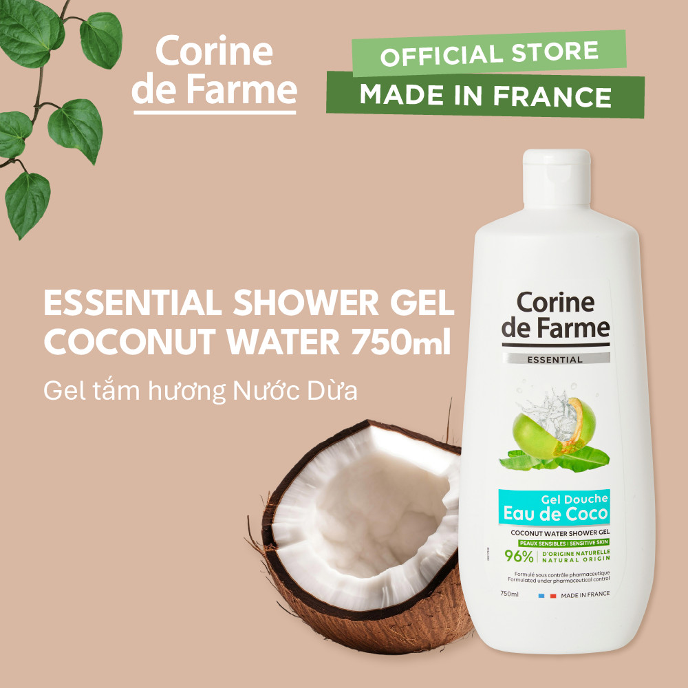 Gel tắm hương dừa giúp dưỡng ẩm và bảo vệ Corine de Farme Essential Coconut Water Shower Gel 750ml
