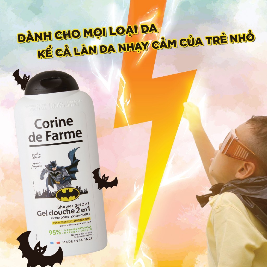 Gel tắm và gội cho bé Corine de Farme Batman Shower Gel 2 in 1