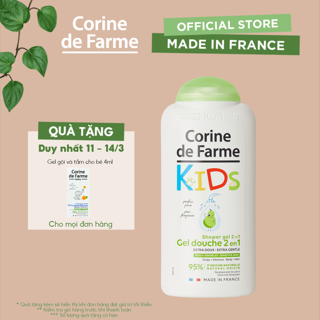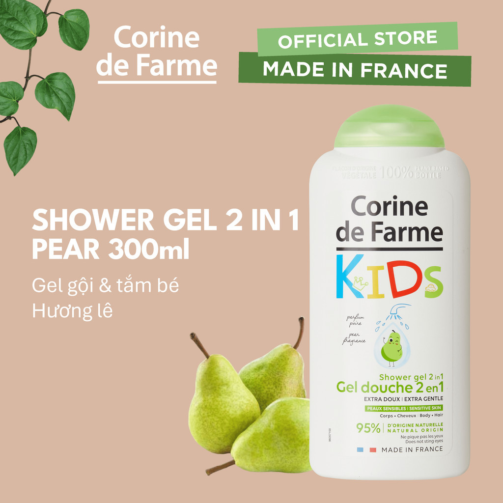 Gel tắm và gội cho bé hương quả lê Corine de Farme Kids Shower Gel 2 in 1 Pear 300ml