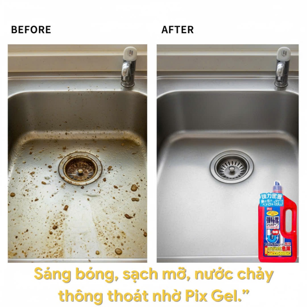 Gel thông cống, đường ống Lion Pix 800g, phân giải tóc, cặn bẩn, kháng khuẩn Nội địa Nhật Bản