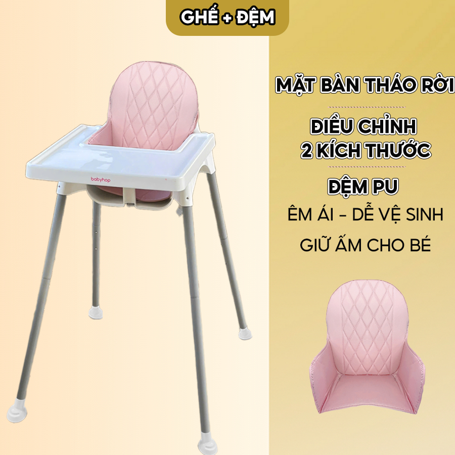 Ghế ăn dặm cho bé kèm mặt bàn Babyhop, điều chỉnh 2 nấc, nhựa PP, 3 dây đai an toàn
