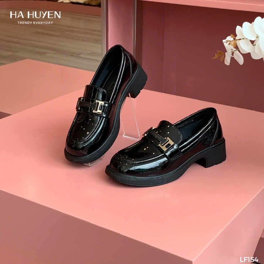 Giày Loafer nữ HÀ HUYỀN da bóng gót vuông 4 phân - LF154