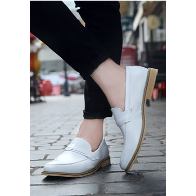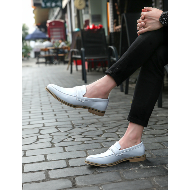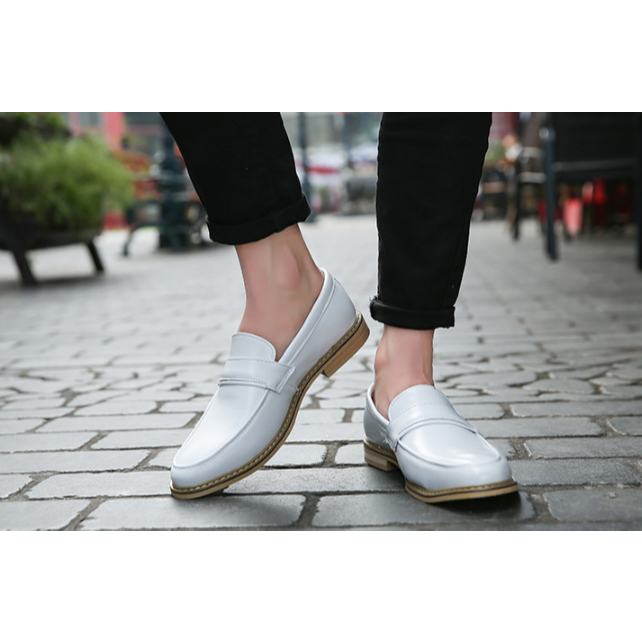 Giày Lười Nam, Giày Tây Không Dây - Đế Gỗ, Da Mềm, Thời Trang, Loafer No.5 White Đế Gỗ - BRC082201