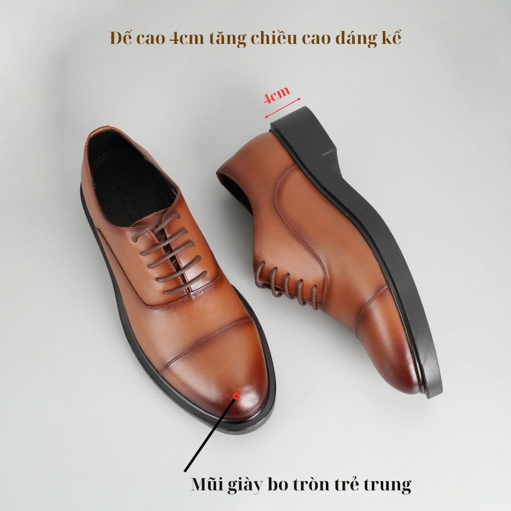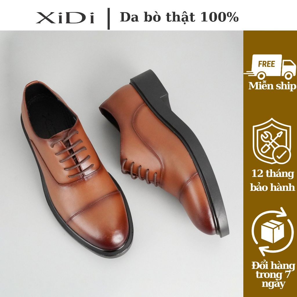 Giày tây nam Oxford mũi tròn XiDi, giày công sở da bò màu nâu GON01