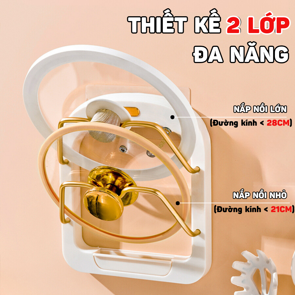 Giá cài nắp vung xoong nồi tặng kèm miếng dán tường cao cấp, Kệ để vung chịu lực lên đến 20KG MY HOME