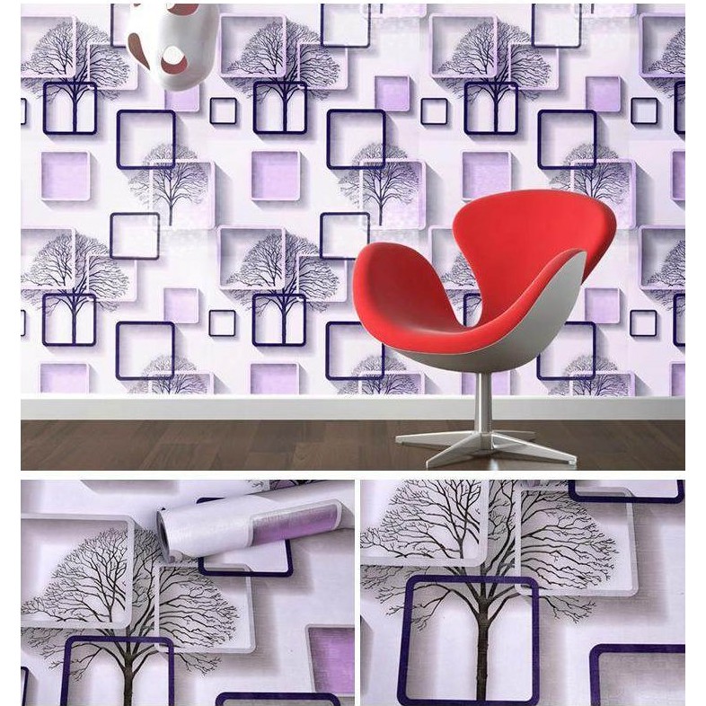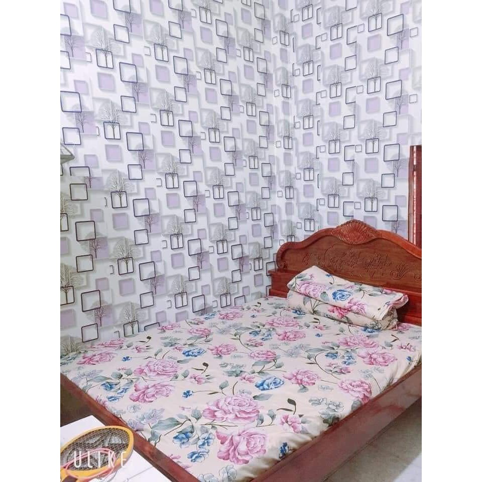 [Xả] Cuộn 10m Giấy Dán Tường Ô Vuông Tím Có Sẵn Keo