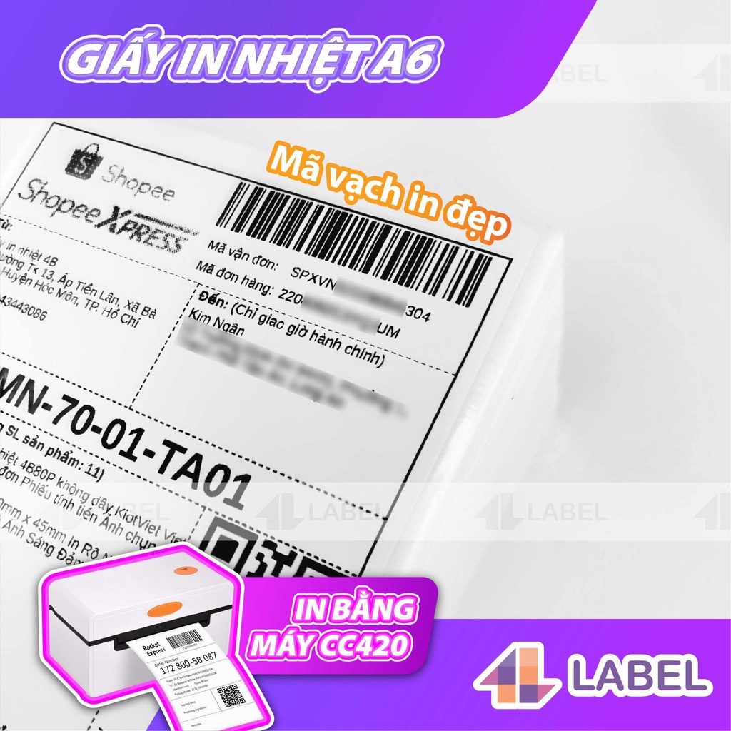 Giấy in đơn hàng TMDT A6 100x150 dạng tệp 500 tem loại dày đế 60gsm, nặng1100gram, loại mỏng đế 40gsm, nặng 900gram