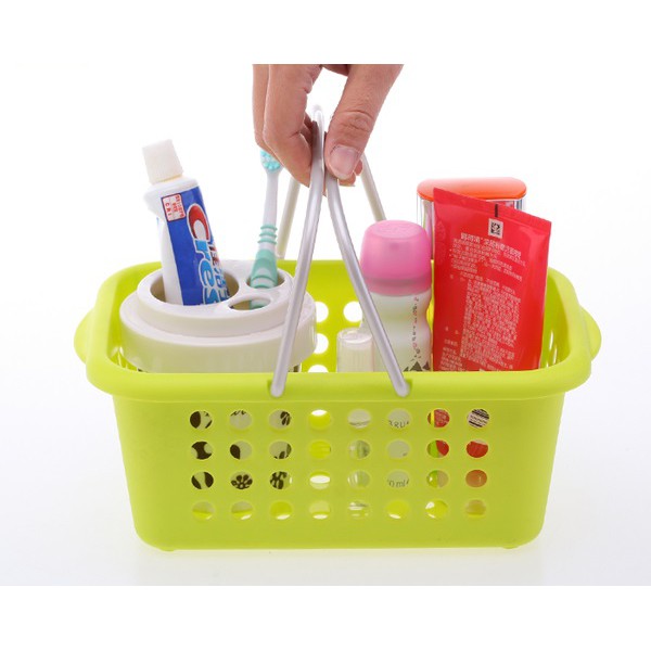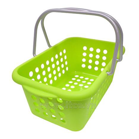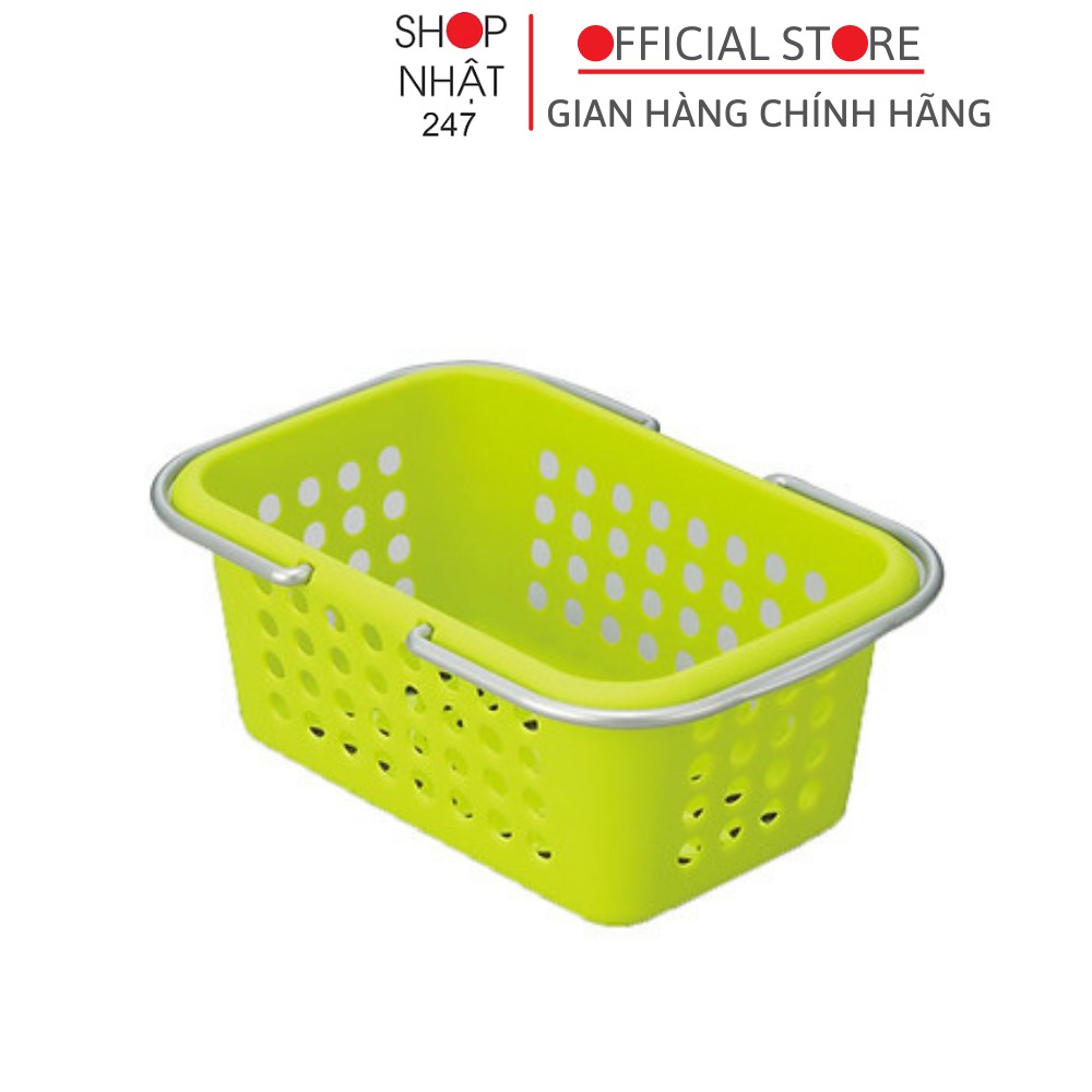 Giỏ nhựa đựng đồ có quay xách cỡ trung màu xanh lá nội địa Nhật Bản - Sanada