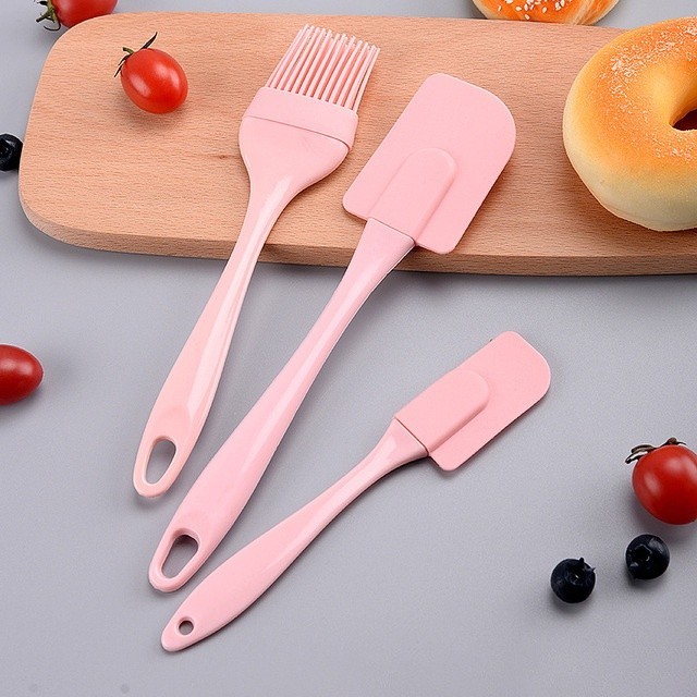 Bộ 3 Dụng Cụ Silicon Làm Bánh Gồm Cọ (Chổi) Quét Phết Bơ Dầu, Gia Vị - Phới Spatula Trộn Bột, Vét Bột, Đánh Trứng