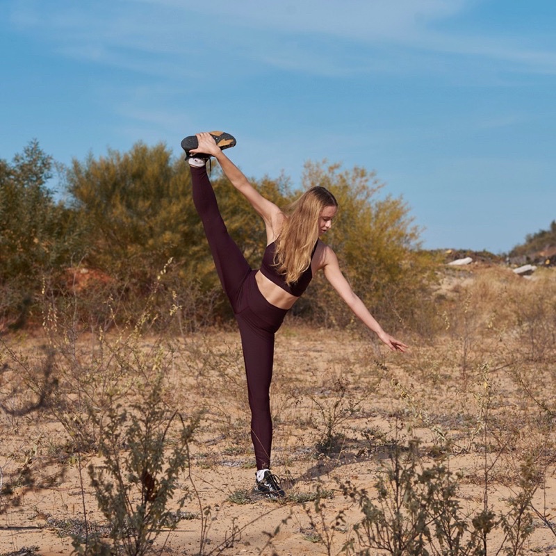 Quần dài Yoga cạp cao thun trơn bóng Tím Cherry Just Feel Free H2C20
