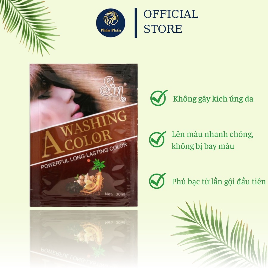 Dầu gội phủ bạc Sin Hair gói 30ml phủ bạc tóc đen nâu đều màu tự nhiên chính hãng