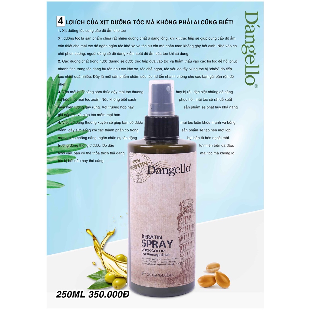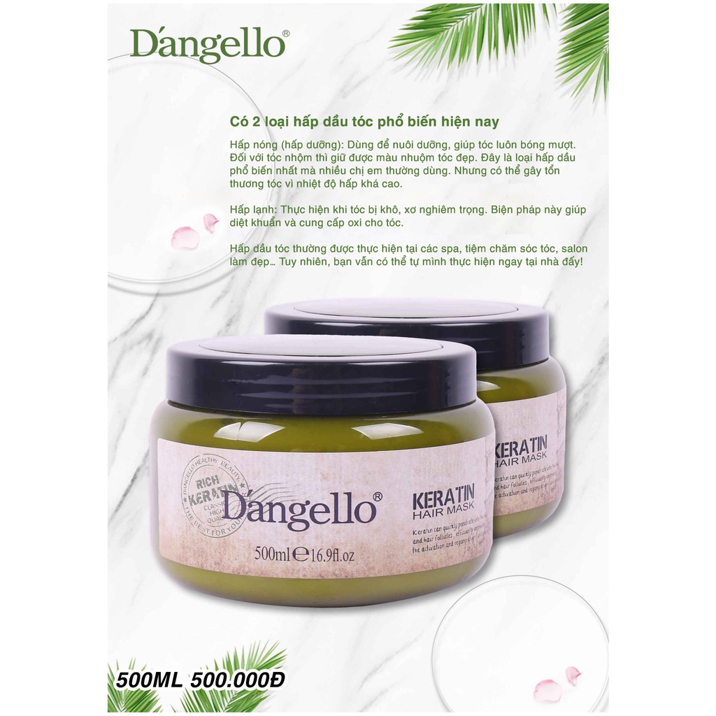 Dầu gội xả, kem ủ tóc, tinh dầu phục hồi siêu mượt Dangello Keratin 60/800ML