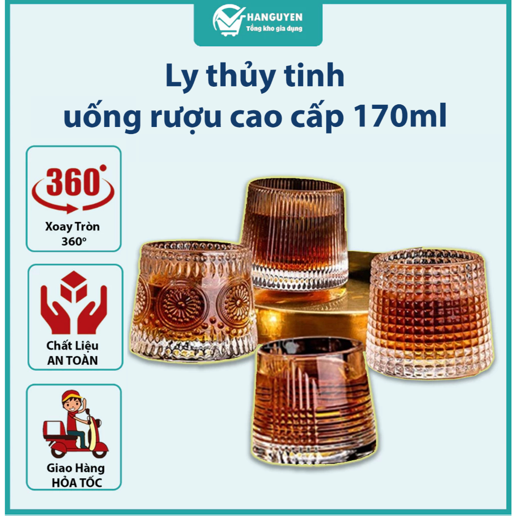 Ly thủy tinh uống rượu cao cấp 170ml - cốc đế lồi sang trọng, dày dặn đẹp mắt