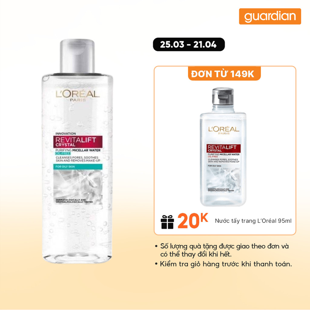 Nước Tẩy Trang L’Oréal Paris Revitalift Crystal Purifying Micellar Water Cho Da Dầu 400ml