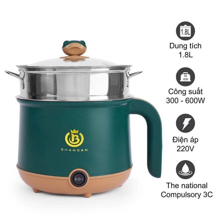 Ca nấu mi mini/ Nồi lẩu Mini Madeli Xanh 18cm Có Xửng Hấp Cao Cấp