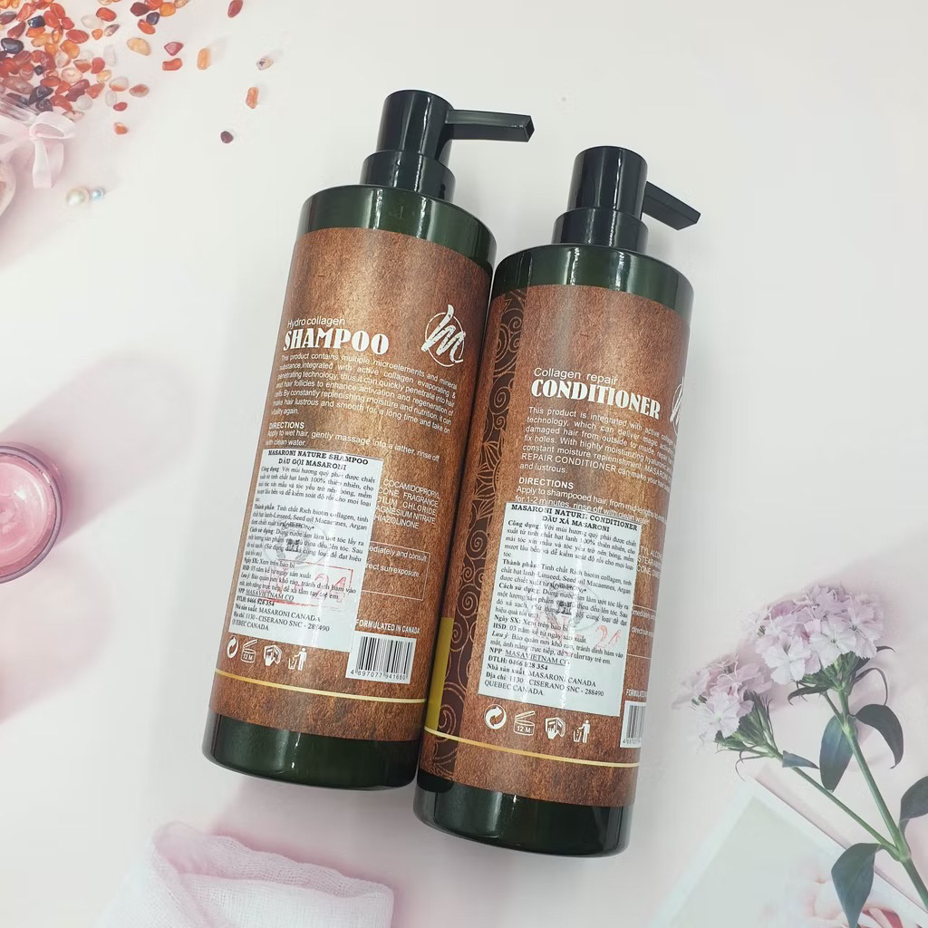 Masaroni Bộ Sản Phẩm Dầu Gội & Xả Hấp Collagen 800ml Dành Cho Mọi Loại Tóc Giữ Ẩm Suôn Mượt Với Vitamin Complex