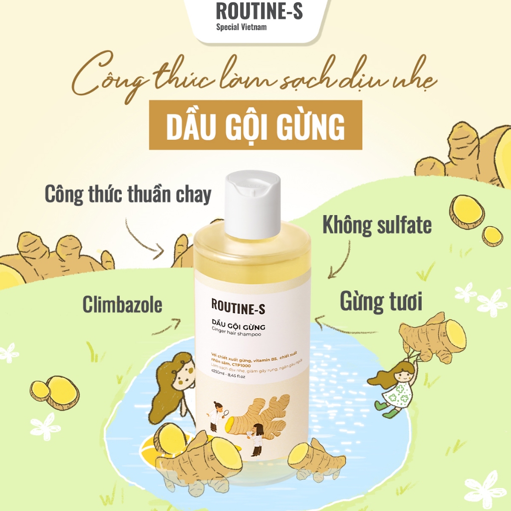 Dầu gội gừng Không sulfate - Công thức thuần chay, 5 không, rất dịu nhẹ cho da đầu nhạy cảm, giảm rụng tóc 300ml
