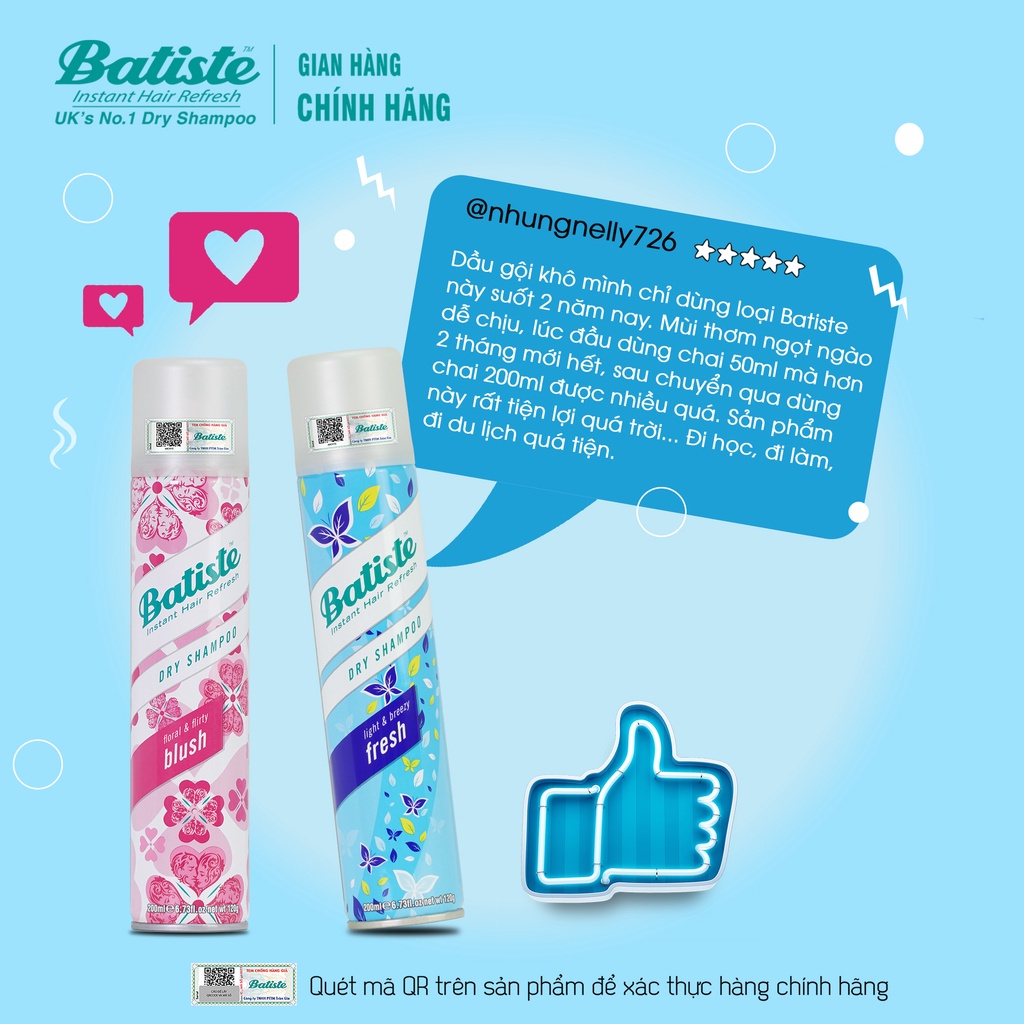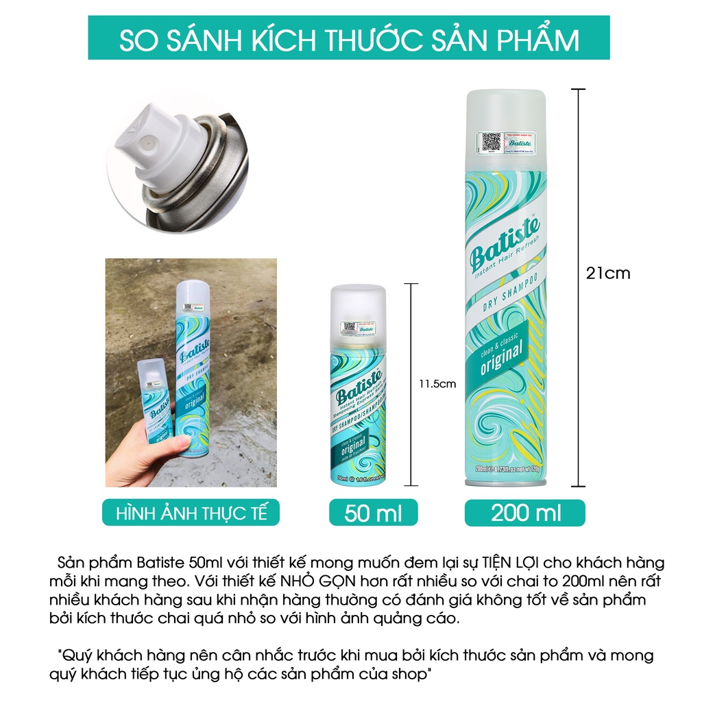 Dầu gội khô Batiste Dry Shampoo