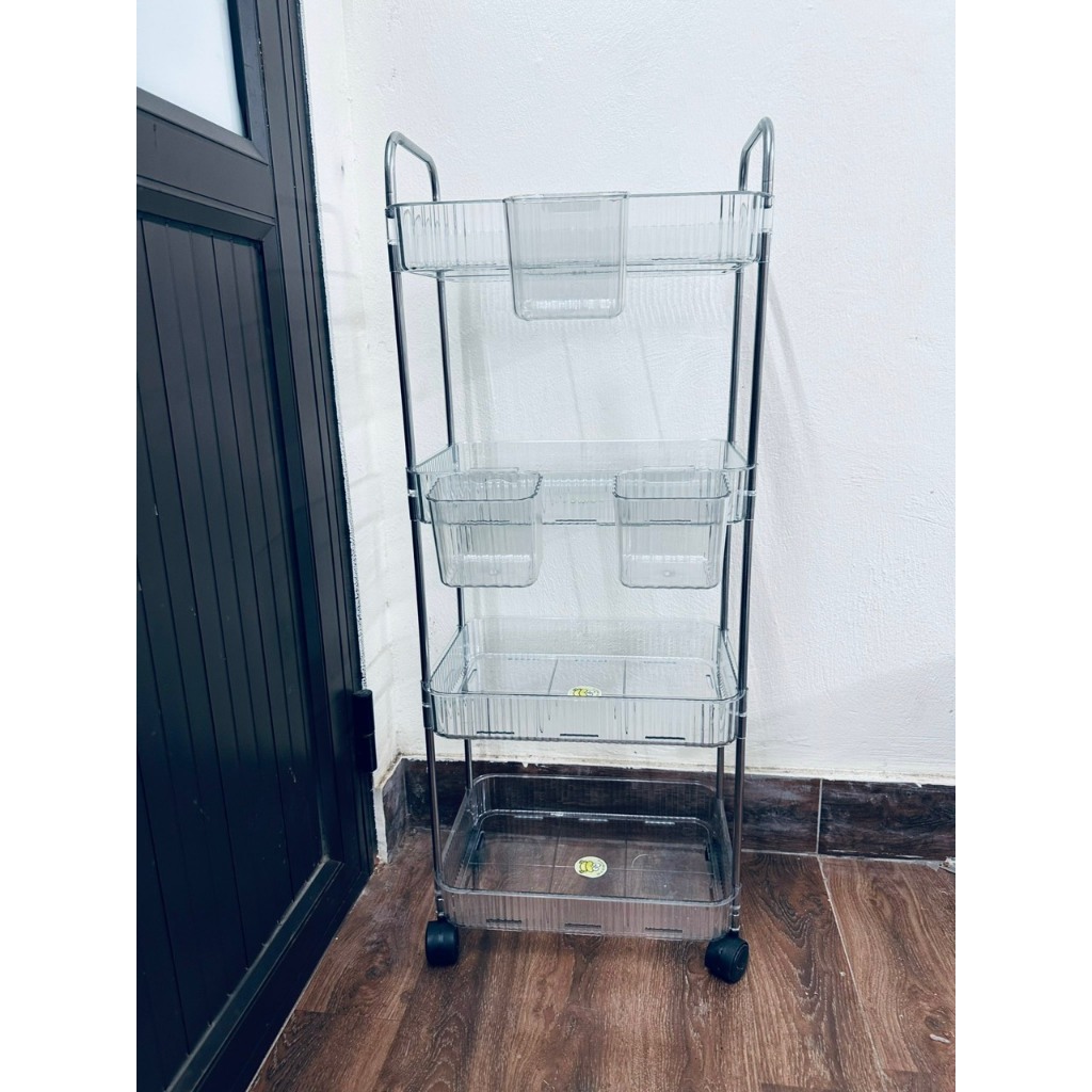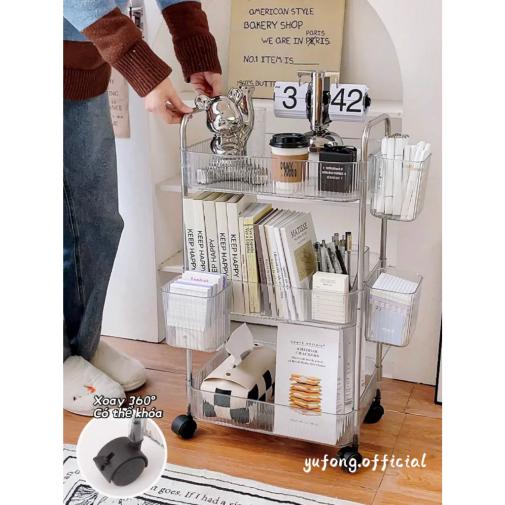 Kệ Để Đồ Trong Suốt Nhiều Tầng Đa Năng Có Bánh Xe, Xe Đẩy Spa, Phòng Bếp, Phòng Tắm Có Lỗ Thoát Nước ( Tặng kèm ống )