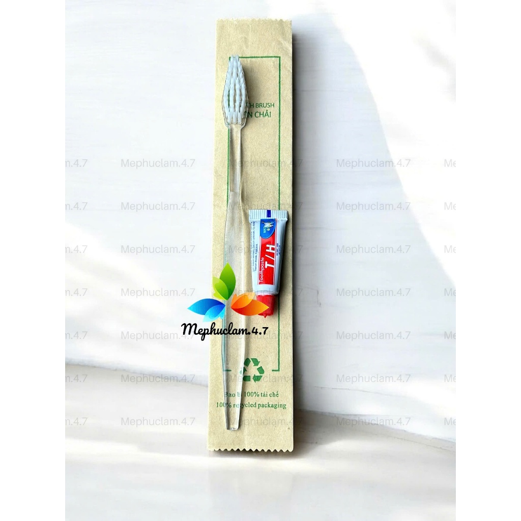 100 Bàn chải cán trong đóng túi Karaft cho khách sạn, resort, homestay, apartment- nhận in logo
