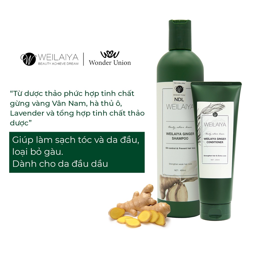 Combo dầu gội đầu, dầu xả tóc Weilaiya chiết xuất nấm Truffle và dầu gội đầu, dầu xả tóc thảo dược gừng Weilaiya