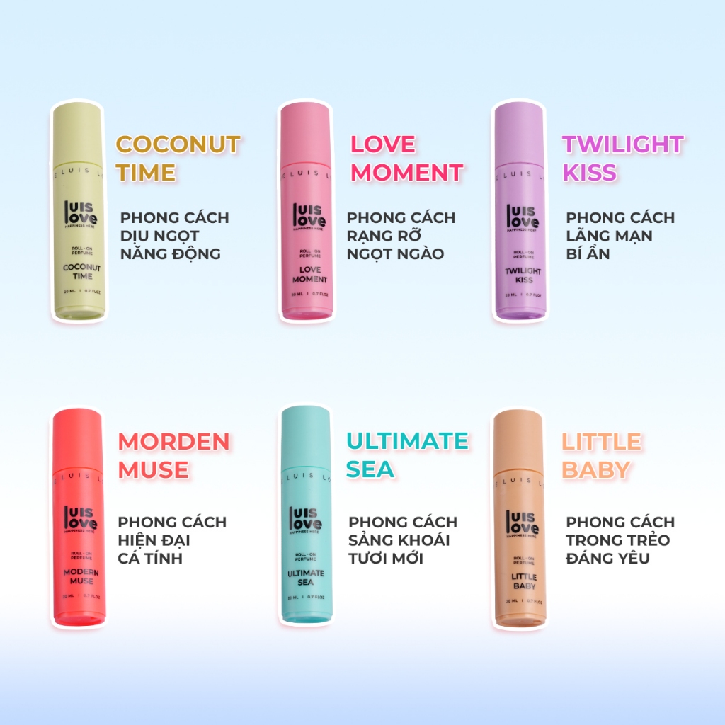 Combo 6 chai dưỡng thơm cơ thể dạng lăn LUIS LOVE (6x20ml), bodymist lưu hương nước hoa lâu, hương thơm ngọt ngào