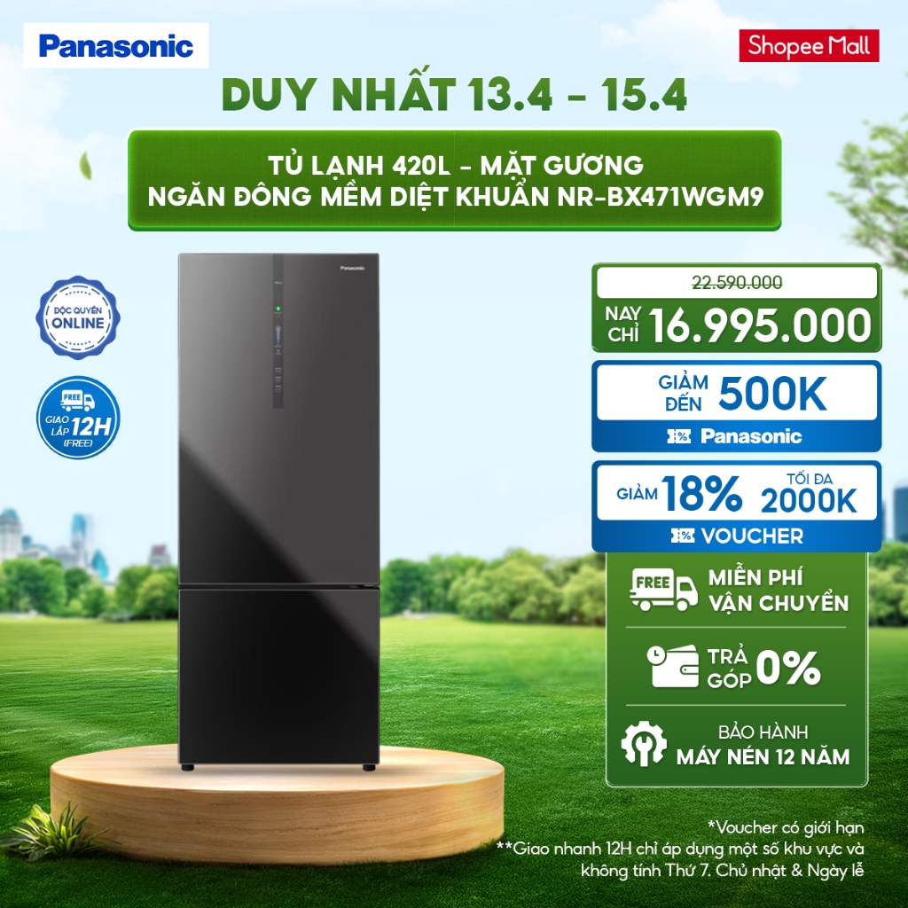 [ELPN2TU GIẢM TỐI ĐA 2TR] [Chỉ giao miền Nam] Tủ lạnh Panasonic Inverter 420 lít NR-BX471WGM9 Đông mềm diệt khuẩn