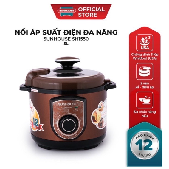 Nồi áp suất điện đa năng SUNHOUSE SHD1550 5lit - màu cà phê