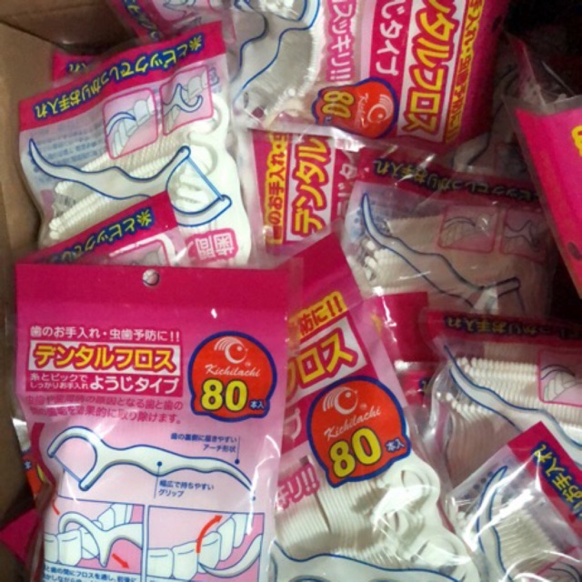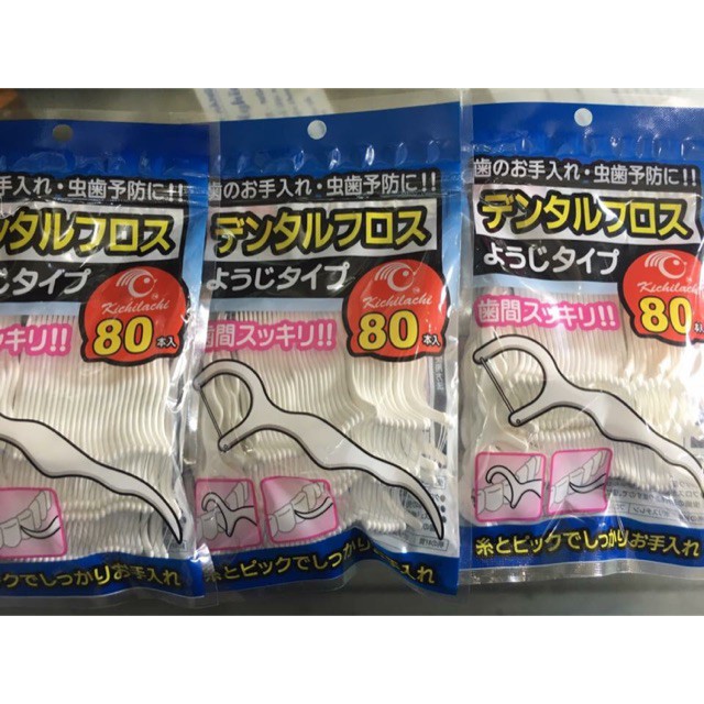 Tăm Chỉ Nha Khoa Nhật (Gói 80 Chiếc) màu xanh và Hồng