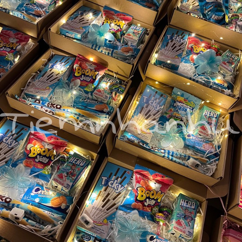 Box bánh kẹo làm quà sinh nhật, quà tặng Thiếu Nhi 1/6, quà tặng Trung Thu, quà tặng 20/10; 14/2; 8/3,… (tặng kèm thiệp)