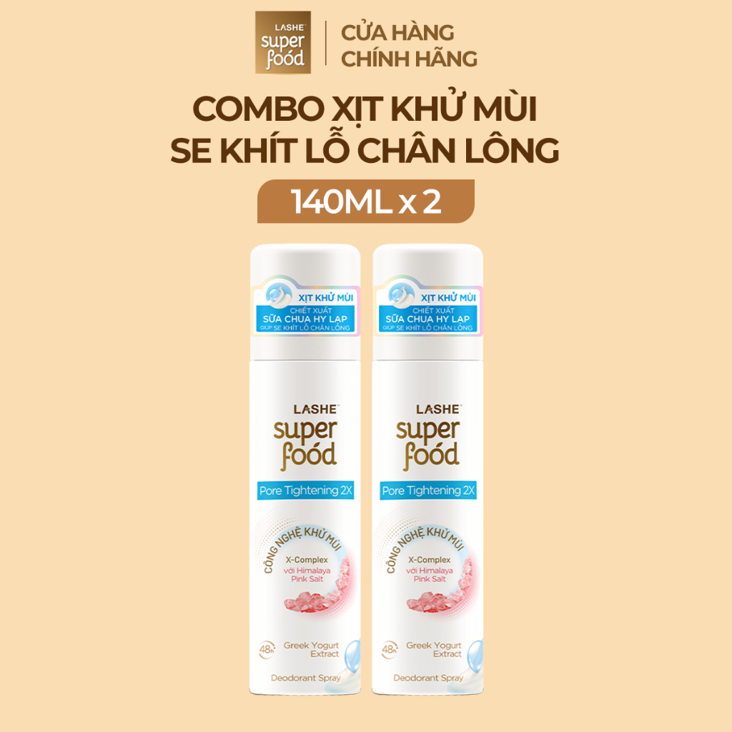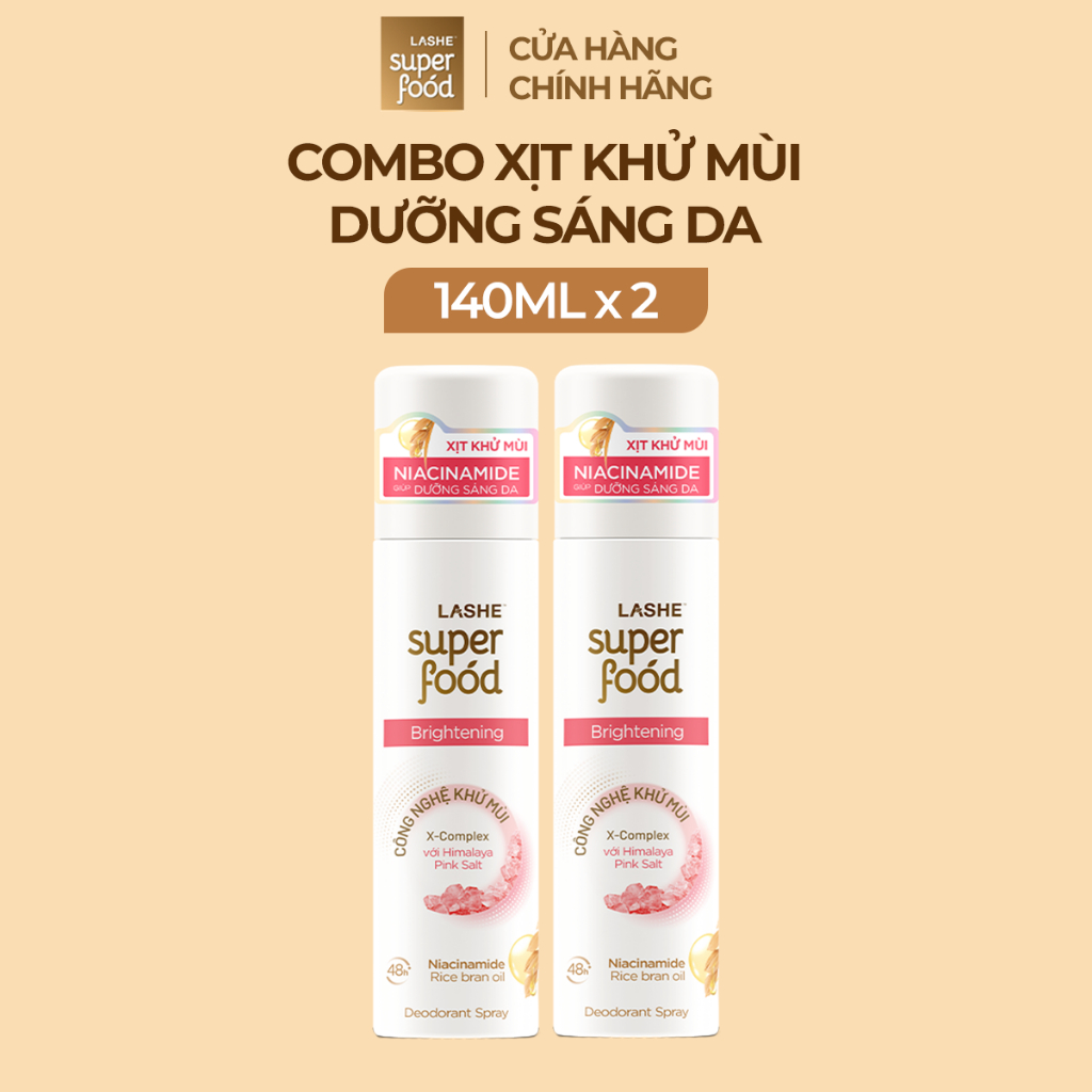 Combo 2 Xịt Khử Mùi LASHE SUPERFOOD Dưỡng Sáng Da / Se Khít Lỗ Chân Lông / Dưỡng Da Mềm Mịn 140MLx2