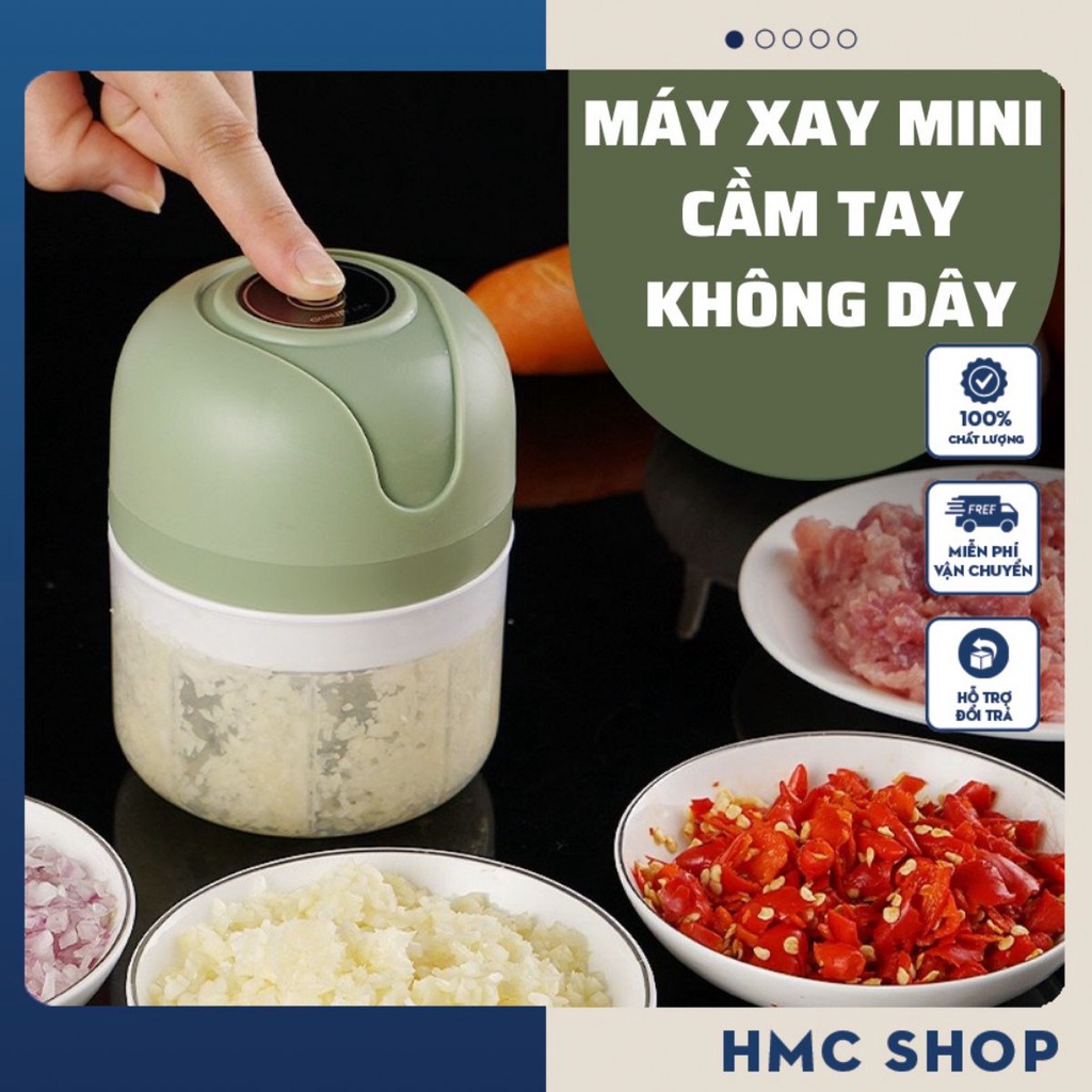 Máy xay tỏi ớt đa năng [Trắng Xanh] thể tích 250ml - Máy xay mini cầm tay có cổng sạc Usb