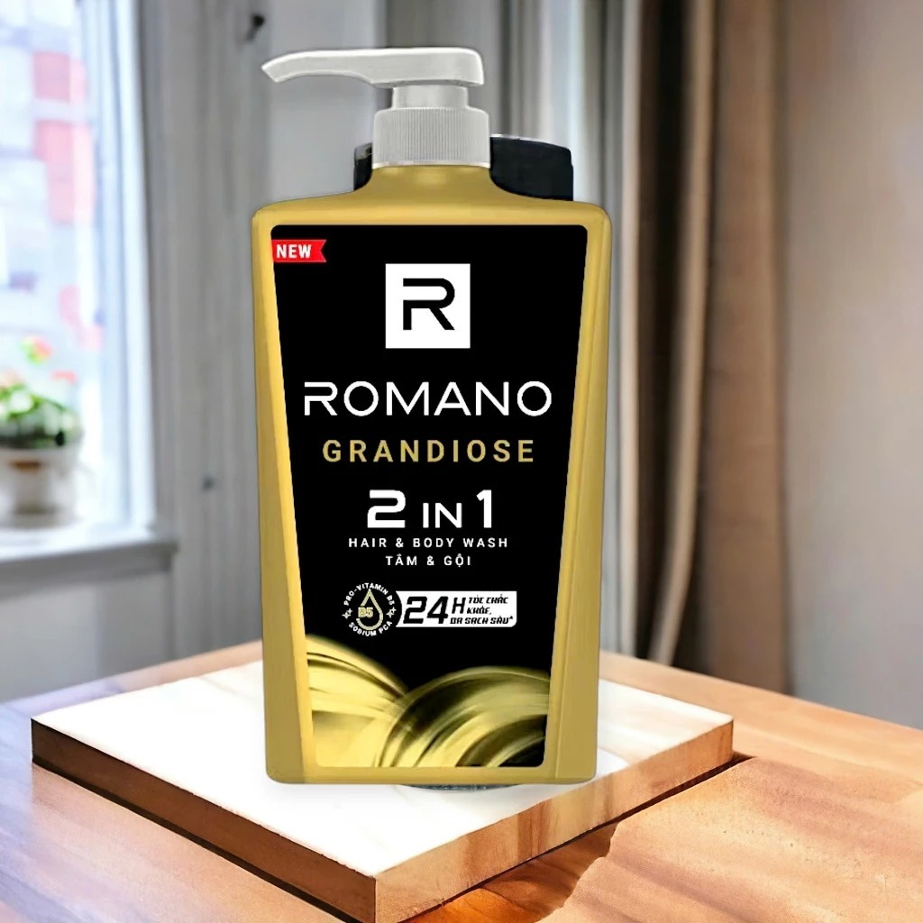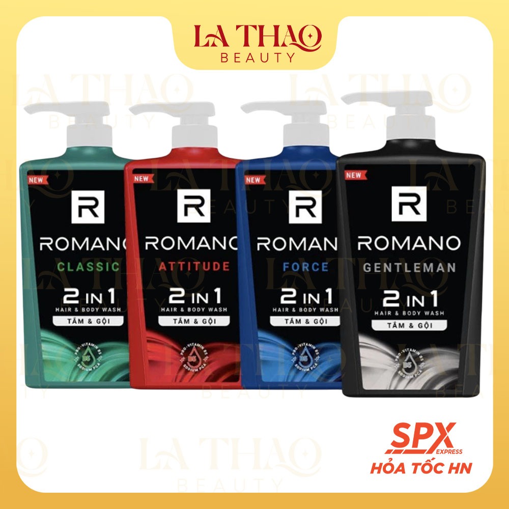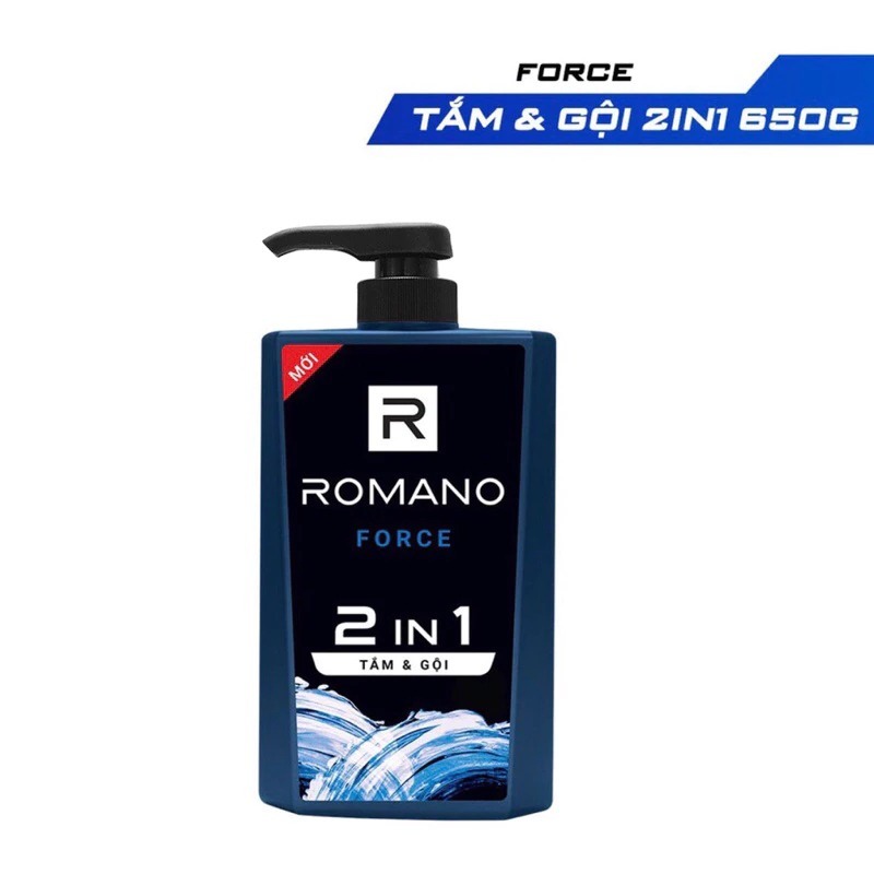 Tắm gội, dầu gôi, sữa tắm cho nam 2 trong 1 hương Nước hoa nam Romano 2in1 650g/chai