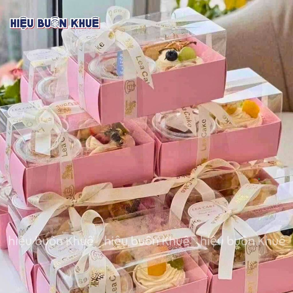 10 Hộp Giấy Nắp Mica Đựng Bông Lan Cuộn, Bánh Ngọt, Set Bánh Lạnh, Hộp Quà Màu Hồng - Vàng [19x10.5x10 cm]