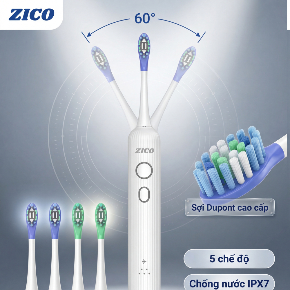 Bàn Chải Điện ZICO XO-100 Pro–Công Nghệ Vibrosonic tiên tiến bao gồm Rung và Giao Động