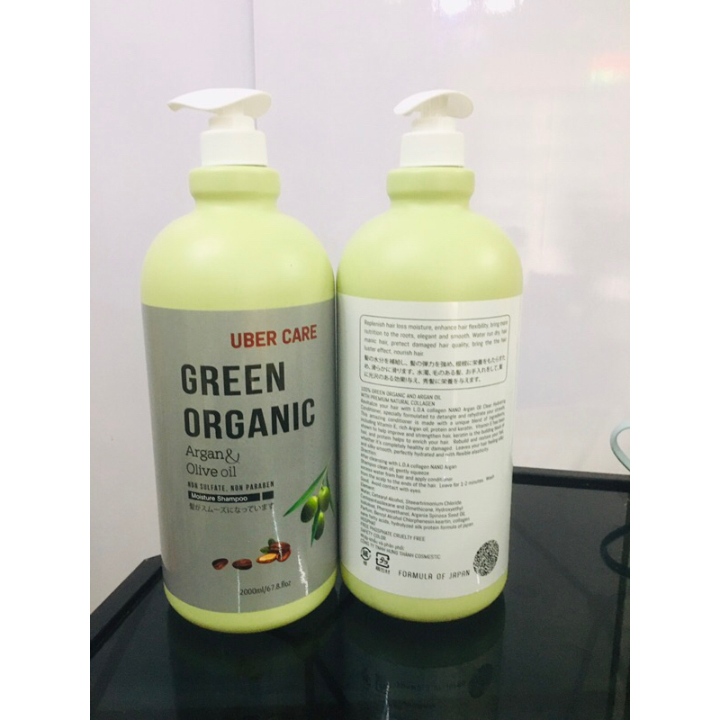 (Mẫu mới) Dầu gội xả uber care green organic 2000ml hương thơm nước hoa mềm mượt chống rụng tóc