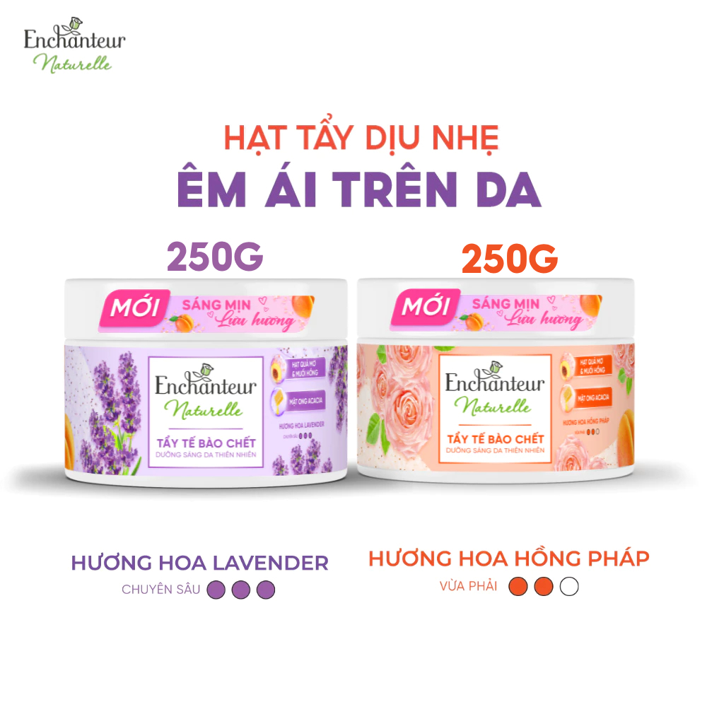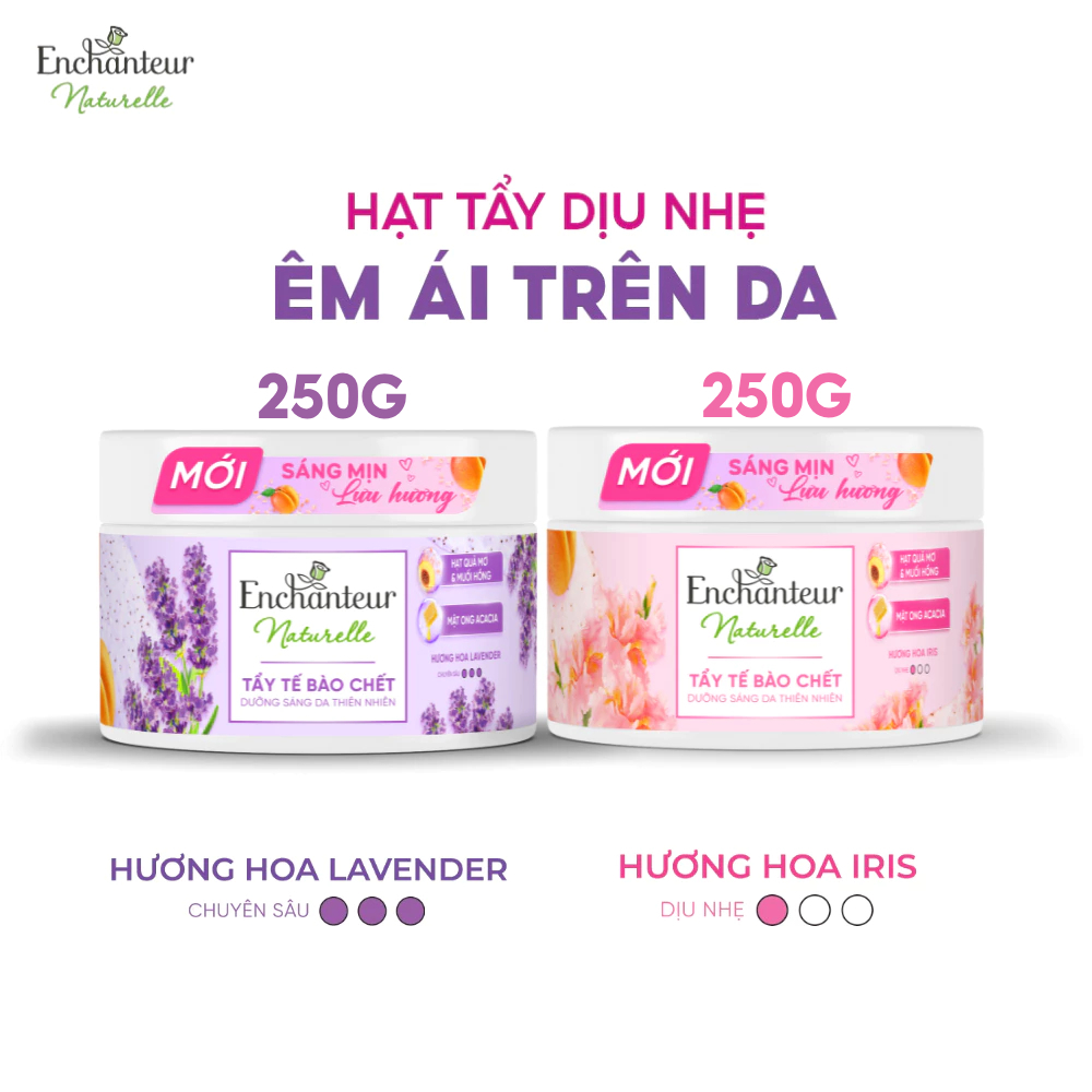 Combo 2 Tẩy tế bào chết thành phần thiên nhiên 100% từ Pháp Enchanteur Naturelle dưỡng da sáng mịn lưu hương 250g