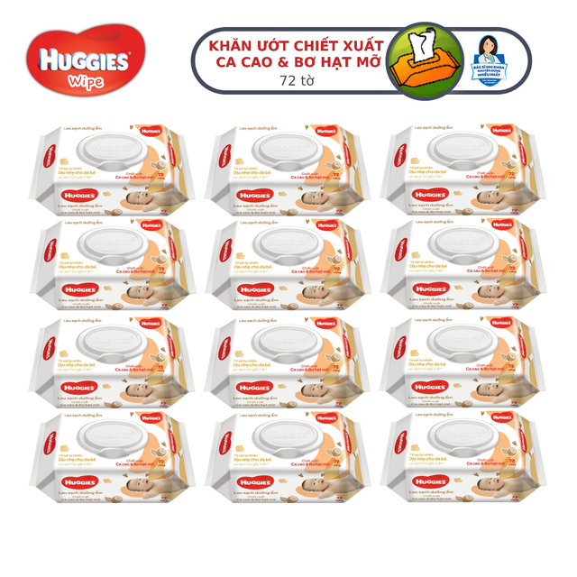 [KOL LIVE] Thùng 12 gói Khăn ướt Huggies chiết xuất Cao cao và Bơ hạt mỡ (72 miếng/gói)
