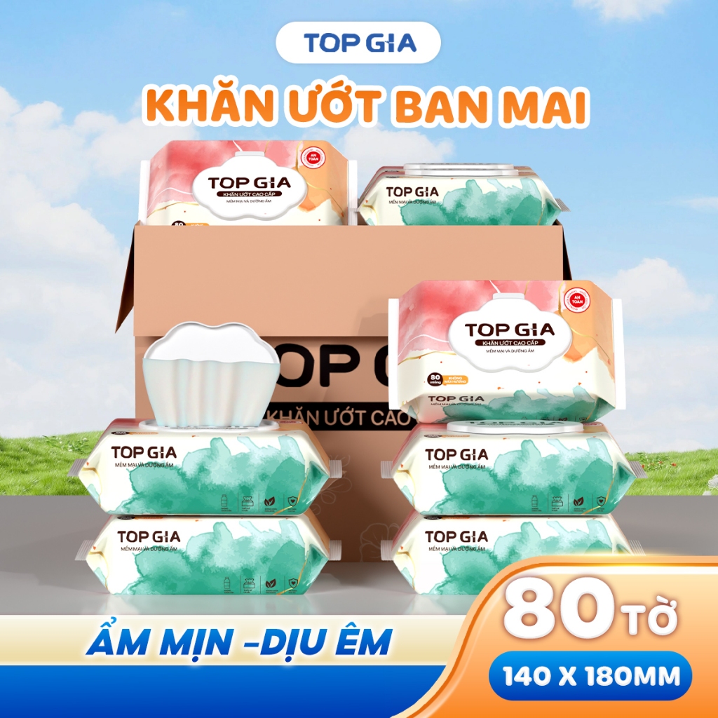[MỚI] Khăn ướt cao cấp Topgia 80 tờ mềm mại, không cồn không mùi, không parabens dành cho mẹ và bé