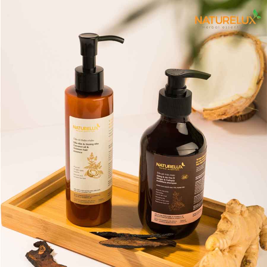 Bộ gội xả Gừng & Hà Thủ Ô giảm rụng tóc, mọc tóc, dưỡng tóc chắc khỏe NATURELUX (500ml/300ml)