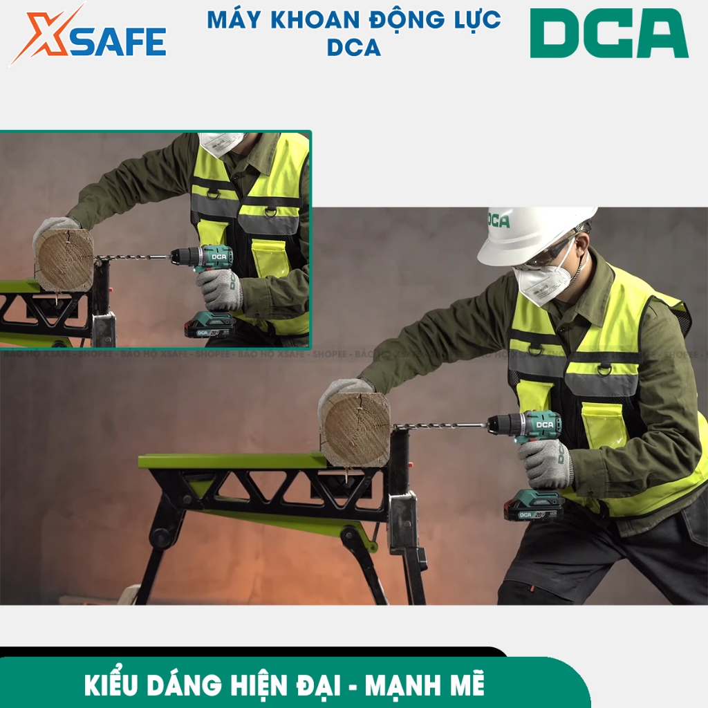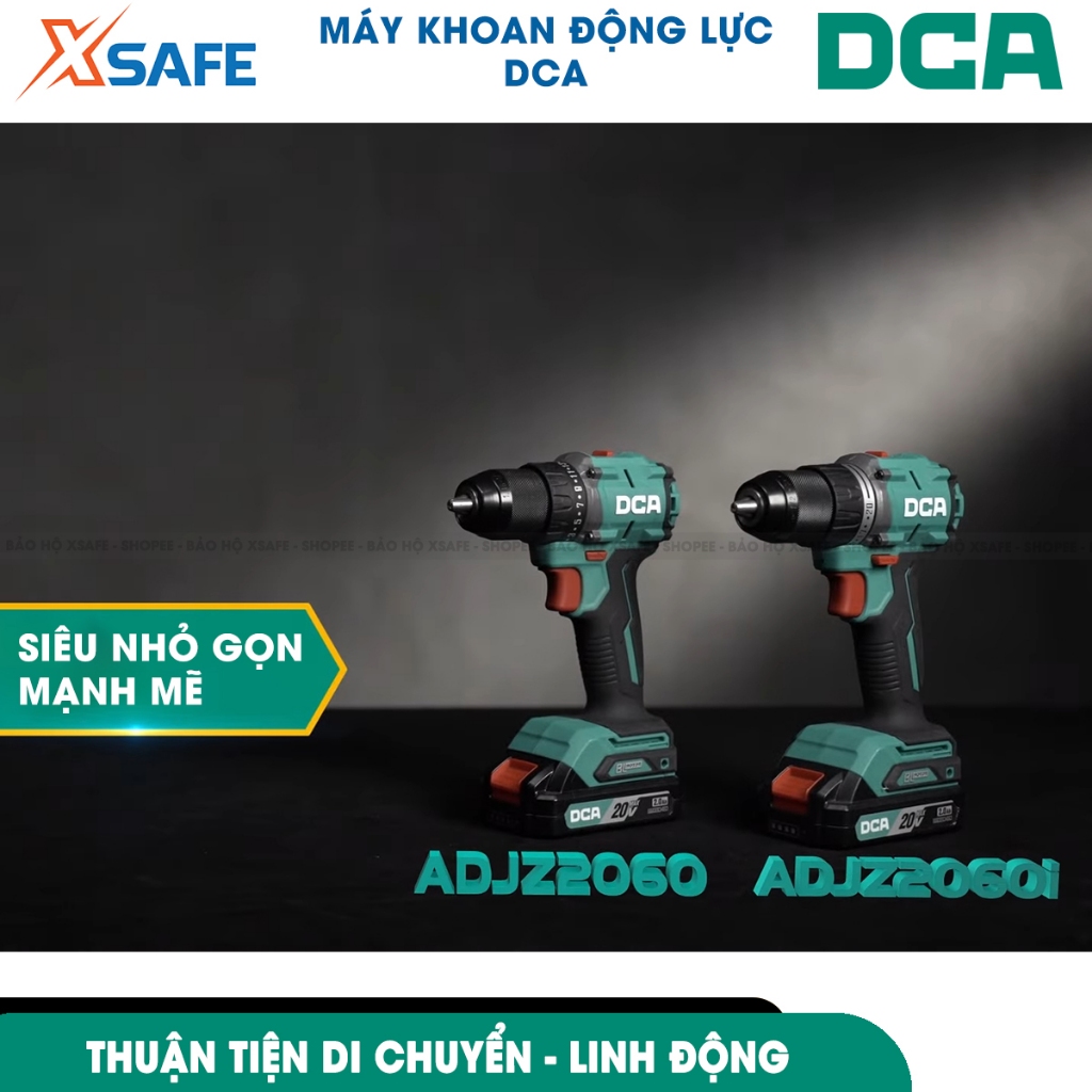 Máy khoan búa không chổi than dùng pin DCA ADJZ2060i khả năng kẹp tối đa 13mm, thân máy siêu gọn nhẹ - XSAFE