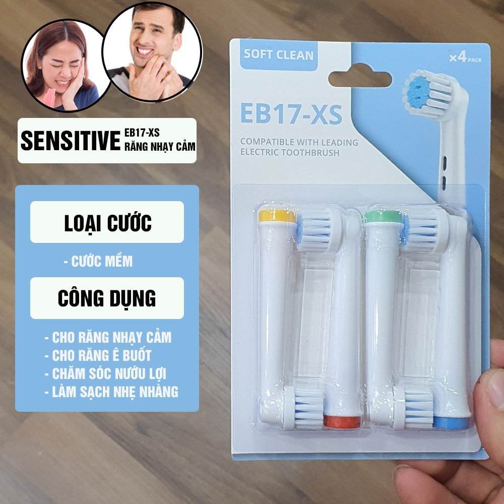 Dành cho máy Oral B, EB17XS, răng nhạy cảm, lông mềm, bộ 4 đầu bàn chải đánh răng điện Minh House
