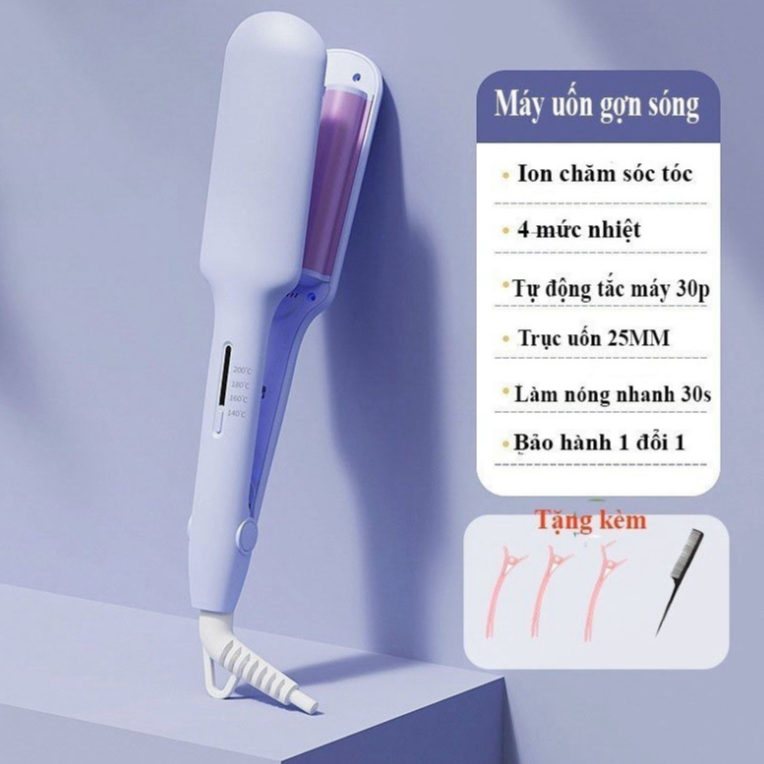 Máy Uốn Tóc Xoăn Sóng Nước Hippie 32mm SIEGIS Tạo Kiểu, Chất Liệu Gốm Sứ Ceramic Cao Cấp