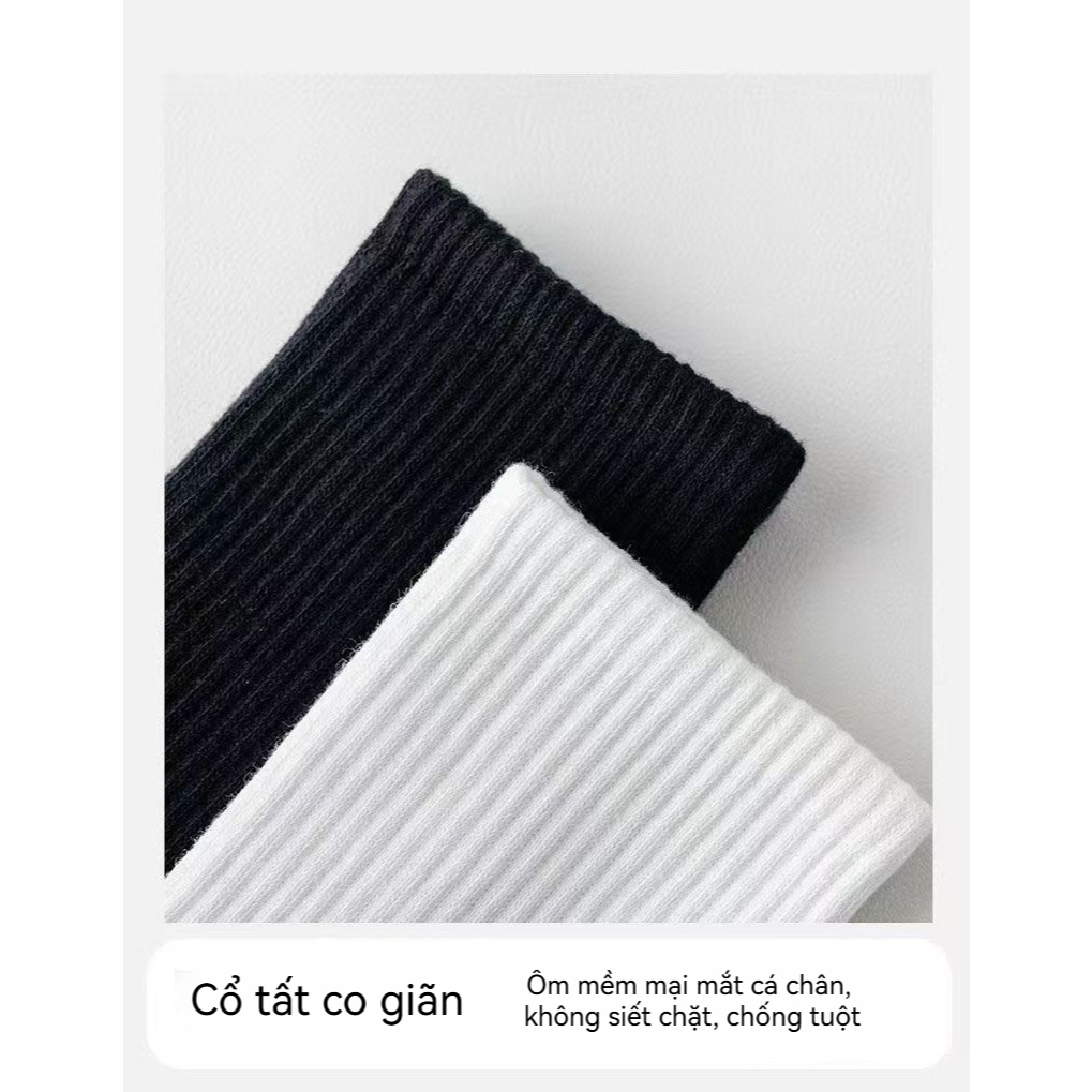 Bộ 10 đôi tất cổ trung unisex nam nữ basic trơn mềm mại màu đen trắng phong cách Hàn Quốc
