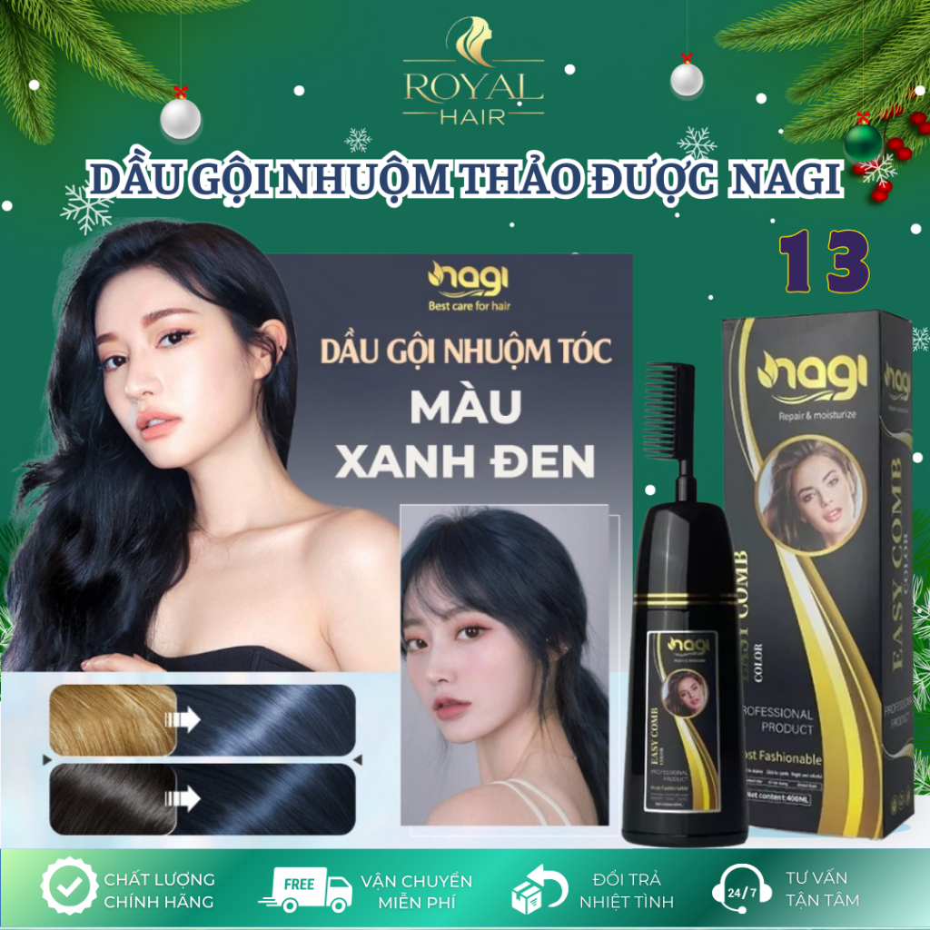 Dầu gội nhuộm tóc màu XANH ĐEN Nagi BLUE AND BLACK 13 chai 400ml dầu gôi thảo dược